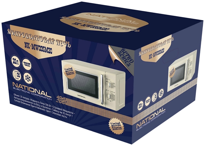Микроволновая ретро-печь японского бренда National NK-MW335M20 не имеет лишних функций, только полезные и нужные. Девиз бренда National Electronic Corporation «Служит долго, служит верно» воплощён в каждой микроволновой печи. Производство каждой детали печи и её сборка тщательно контролируются, печь надёжная и качественная.