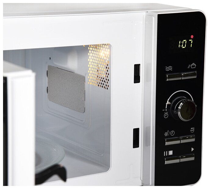Микроволновая печь OURSSON MD2033/WH Белый с электронным управлением и внутренним объемом 20 литров оснащена LED-дисплеем с часами и таймером на 60 минут. Модель имеет 8 автоматических программ приготовления, функцию разморозки, регулировку уровней мощности, функцию «Быстрый старт», а также блокировку панели управление от детей. Максимальная мощность составляет 700Вт.