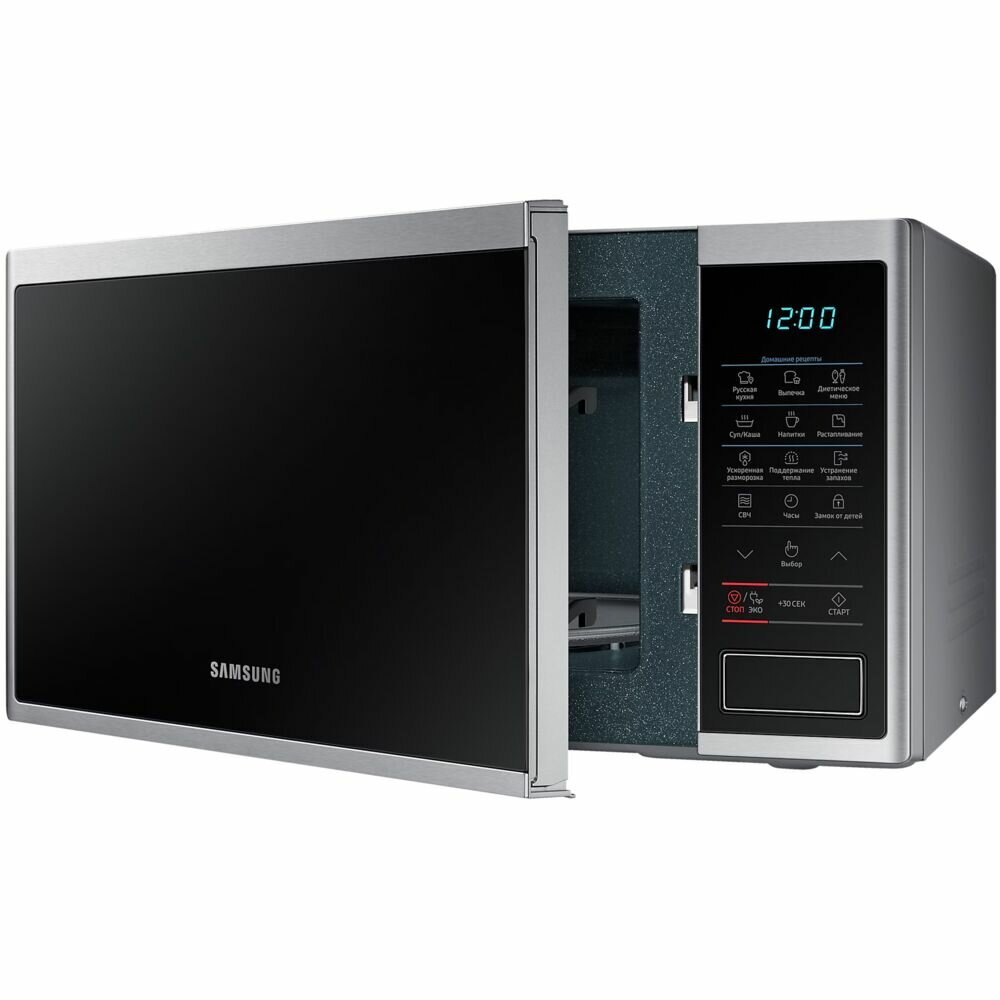 Микроволновая печь SAMSUNG MS23J5133AT/BW Поддержание тепла Функция поддерживает тепло приготовленного блюда, не перегревая его. Блюдо сохраняет аромат, текстуру, вкус, и готово к подаче в любой момент. Здоровое питание Микроволновая печь имеет удобные запрограммированные рецепты диетического меню. Вы легко приготовите блюда из фасоли, риса, киноа, куриного филе, лосося. Будьте уверены в результате. Растапливание Размягчение масла или растапливание шоколада? Микроволновая печь Samsung — ваш соус-шеф. Выберите удобный режим растапливания (шоколад, сахар или масло) для идеальных ингредиентов вашего блюда. Великолепный дизайн Микроволновая печь имеет отличный дизайн, который удачно впишется в вашу кухню. Корпус сделан из нержавеющей стали, а фасад имеет цельное зеркальной покрытие. БИОкерамическое покрытие — 10 лет гарантии Прочное БИОкерамическое покрытие легко очищается и не царапается. Его гладкую поверхность можно очистить без использования жестких чистящих средств. Кроме того покрытие не теряет цвет после длительной эксплуатации, не подвержено коррозии, не царапается и служит долго. ЭКО режим Режим экономии ECO Mode обеспечивает минимальное энергопотребление в режиме ожидания, что уменьшит ваши счета за электричество. Быстрая разморозка Функция ускоренной разморозки позволяет равномерно и быстро разморозить продукты. Наслаждайтесь вкусной едой вместе с вашей семьёй в любое время.