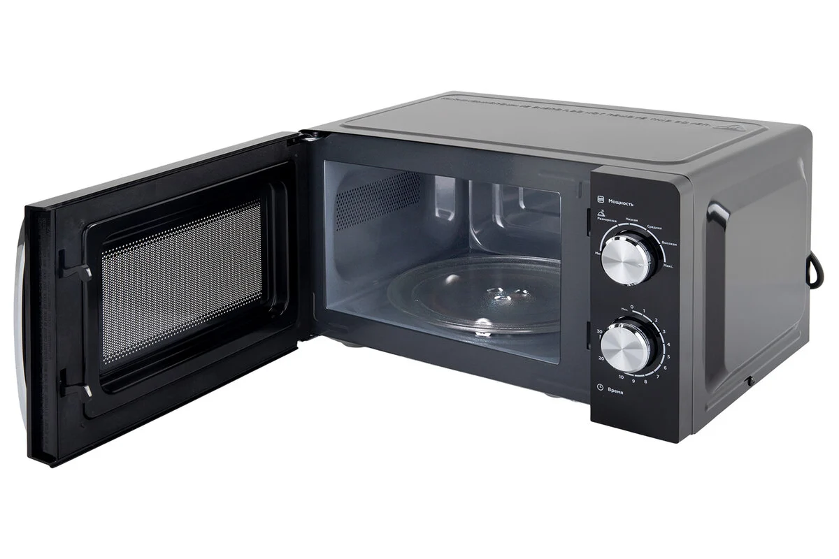 Простое механическое управление осуществляется с помощью поворотных переключателей. С их помощью вы можете переключить режим мощности или таймера. В микроволновой печи установлено 6 режимов мощности, благодаря которым вы с легкостью подберете самый подходящий для ваших любимых блюд.