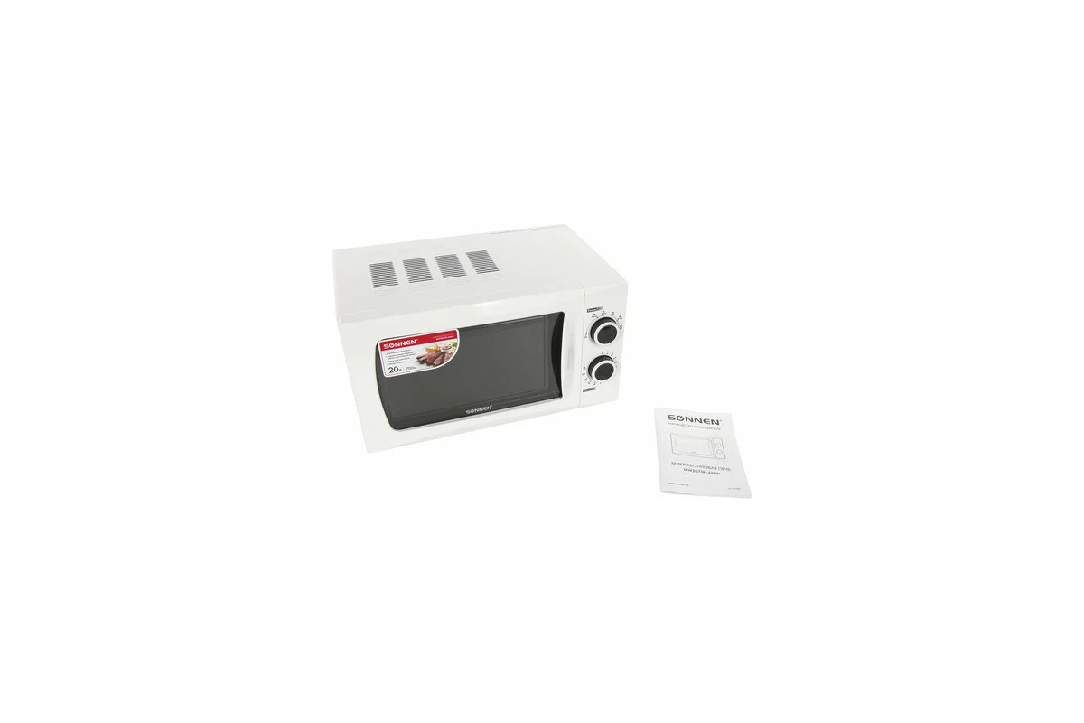 Микроволновая печь SONNEN MW2070H-6MW 20 л, 700 Вт, таймер, механическое управление, белая 454652 предназначена для дома или офиса.