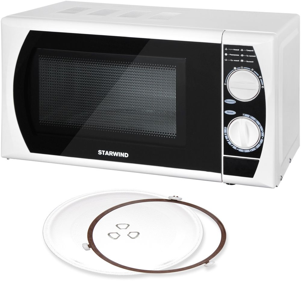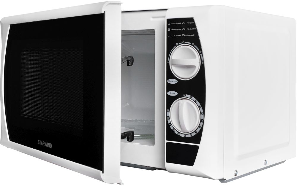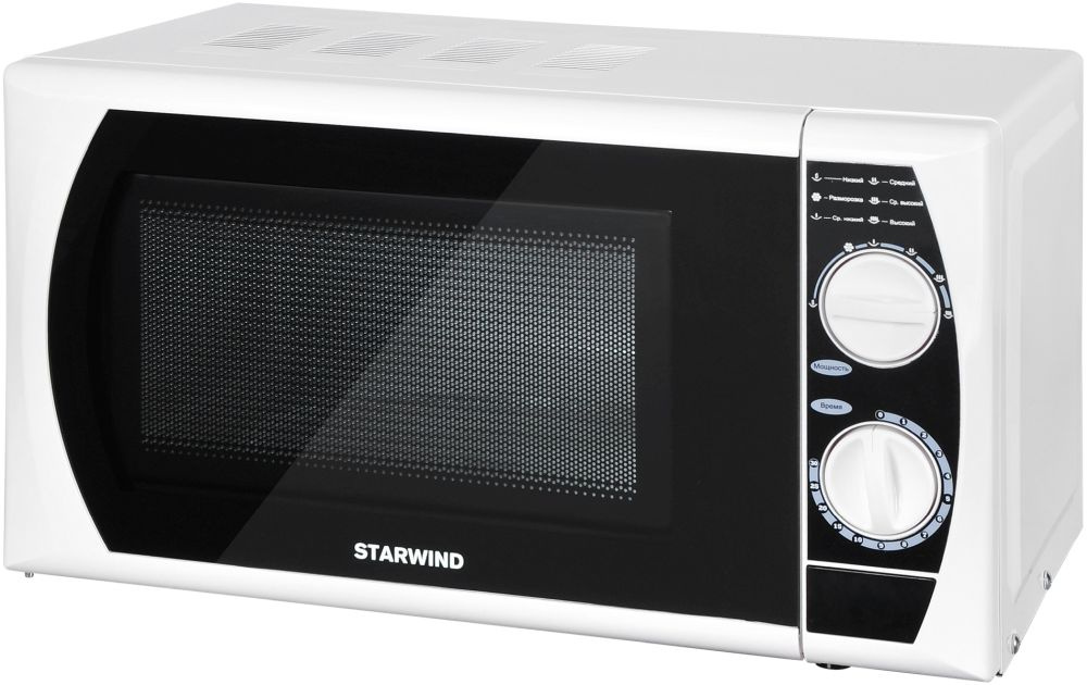 Стильный дизайн, продуманная конструкция и компактные объемы микроволновой печи STARWIND SMW2920 позволят идеально вписаться в интерьер любой кухни, а особенно – малогабаритной. Корпус печи выполнен из металла в черно-белом цвете. В нижней части предусмотрены прорезиненные ножки, благодаря которым прибор надежно фиксируется на поверхности и не ездит по ней. На дверце установлено смотровое окно из жаропрочного стекла. Справа от двери вверху находится ручка регулировки мощности. В зависимости от типа разогреваемого или готовящегося продукта можно выбрать: «максимальную», «высокую», «среднюю» или «низкую» мощность. А для бережного размораживания фруктов, ягод, овощей или мяса, предусмотрен специальный режим «разморозки», используя который вы сэкономите уйму времени и полезных витаминов и микроэлементов в продуктах.