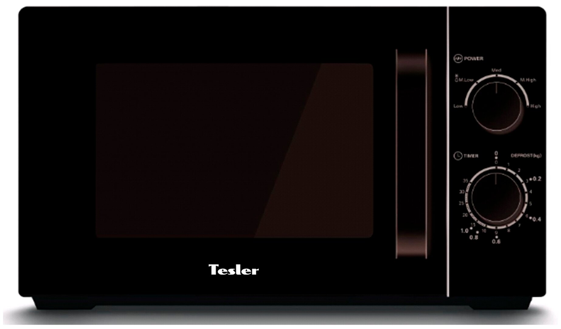 СВЧ-печь Tesler MM-2023 имеет 5 режимов, включая режим разморозки по весу продукта и режим высокой мощности.