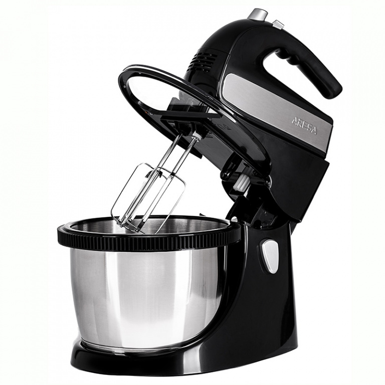 Комплектация Cъемная вращающаяся чаша из нержавеющей стали (3л). Венчики для взбивания яиц и крема. Насадки для замешивания теста. Защитная крышка чаши с отодвигающимся прозрачным окошком. Cкребок