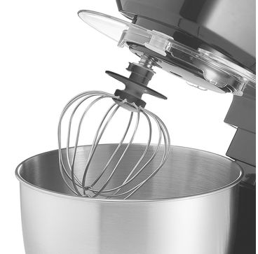 Комплектация лопатка, насадка для смешивания, защитная крышка, документация, крюк для теста, венчик для взбивания, чаша
