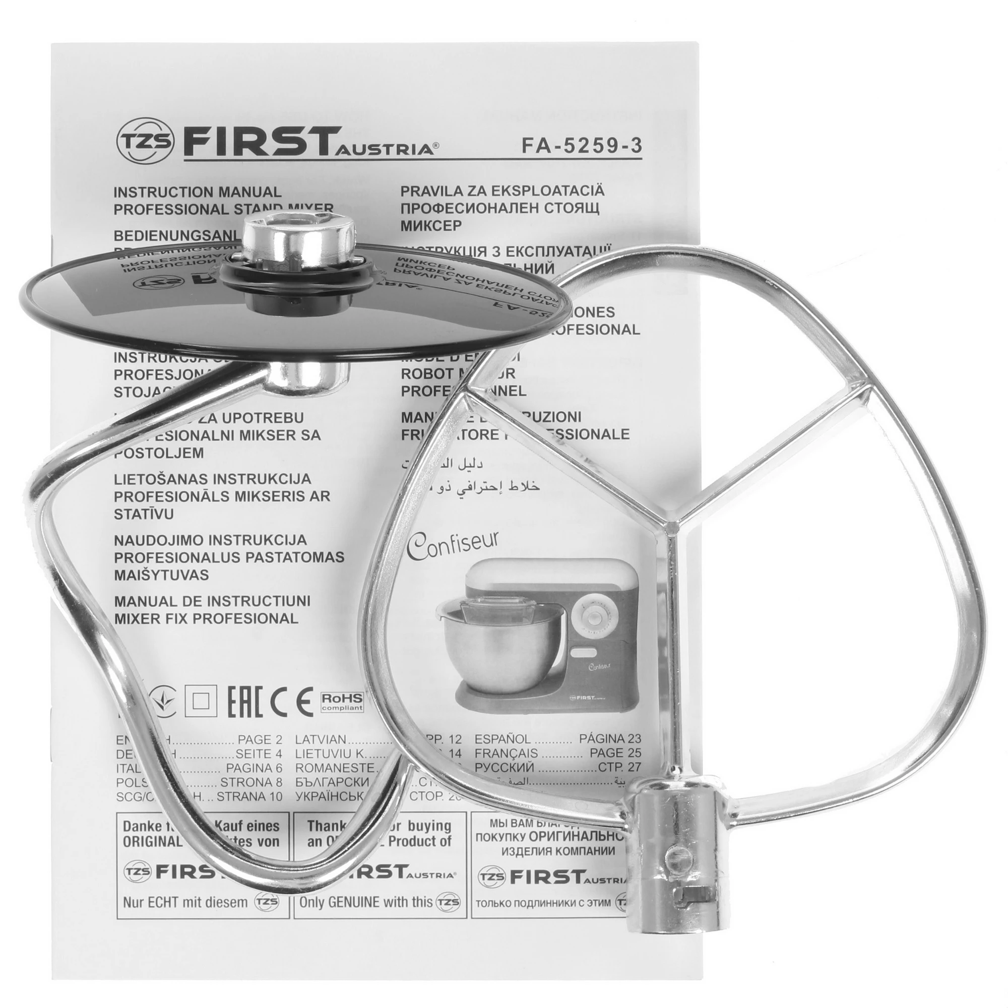 брызговик, насадка-венчик, насадка-лопатка, насадка крюк, чаша