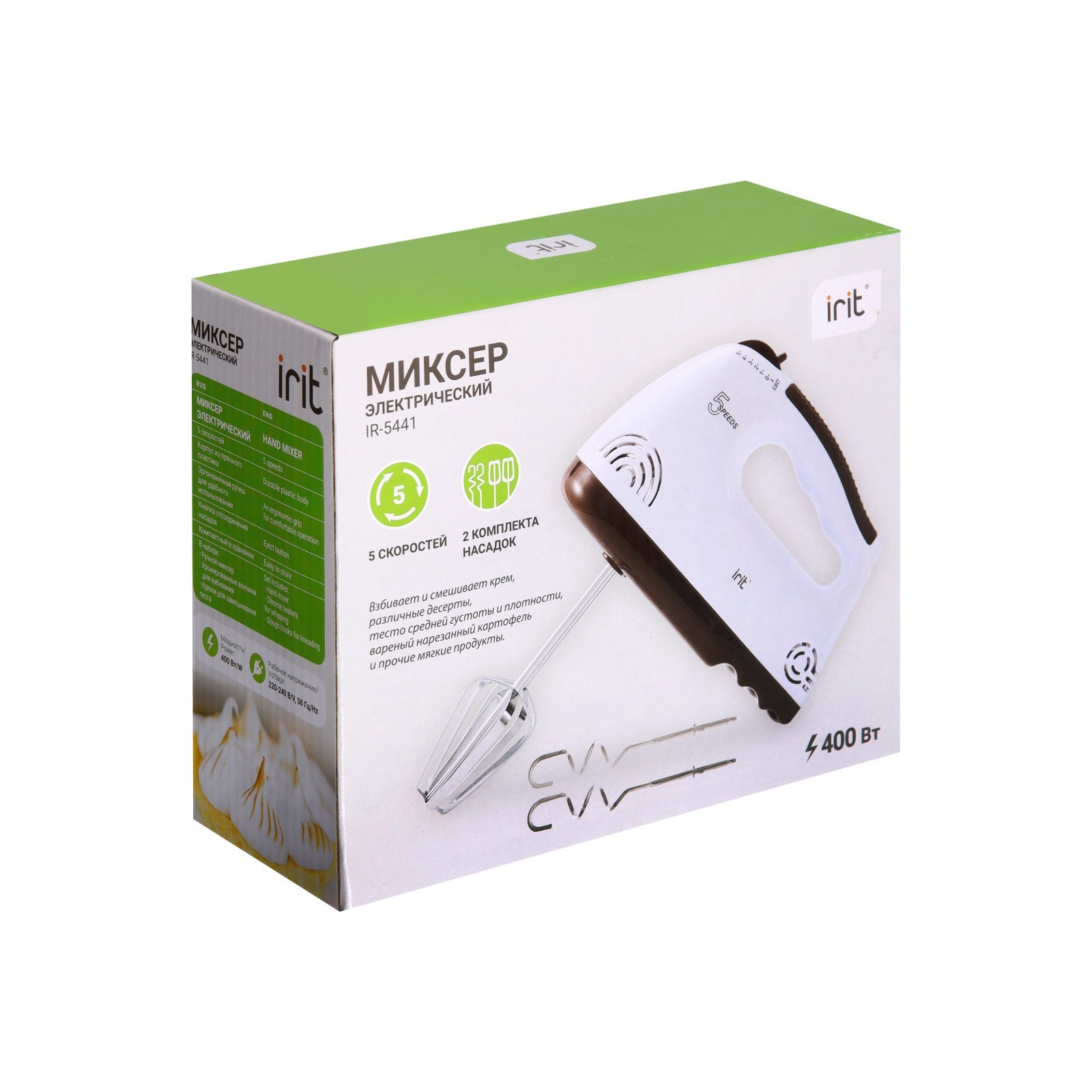 Миксер электрический Мощность 250Вт, 220-240В/50Гц 5 скоростей, 2 комплекта насадок : хромированные венчики для взбивания и замешивания теста.