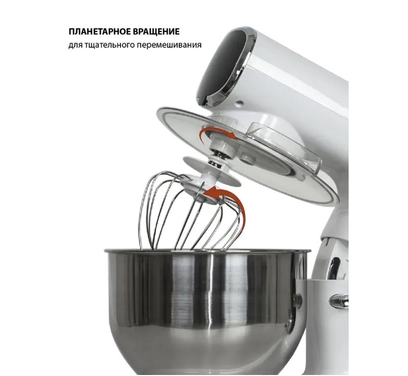 Миксер планетарный с чашей 5 литров из нержавеющей стали JVC JK-MX515 white с импульсным режимом, мощностью 1000 Вт, 3 насадками и 6 скоростями представляет собой современный стационарный домашний миксер для замеса дрожжевого и бездрожжевого теста различной вязкости, взбивания яиц, сливок, кремов и муссов, приготовления пюре. Миксер с чашей JVC имеет планетарную систему смешивания. Это значит, что насадки вращаются вокруг своей оси и по окружности чаши, поэтому тесто или другие ингредиенты будут иметь идеальную консистенцию без комков. Такой чудо-прибор отлично справляется с «тяжелым тестом», поэтому его часто используют в небольших пекарнях и домашних кондитерских.