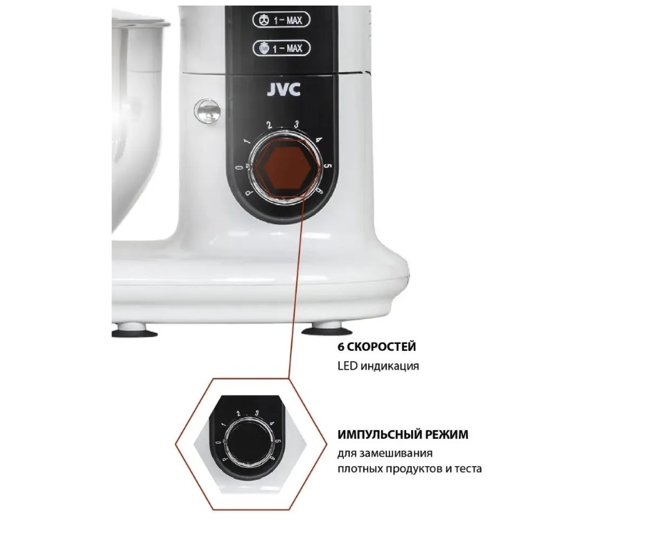 Надежный, стильный и качественный планетарный стационарный миксер для теста JVC станет незаменимым помощником на вашей кухне. С ним Ваши руки останутся свободными, а работа будет выполняться. Почувствуйте себя профессиональным кондитером, не выходя из дома.