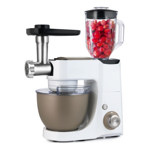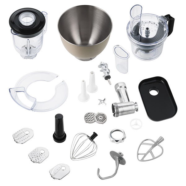 В комплекте миксера имеется блендер, комбайн и мясорубка, что превращает эту модель в универсальную кухонную машину «4-в-1».