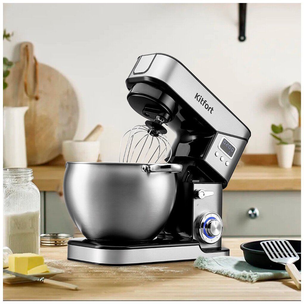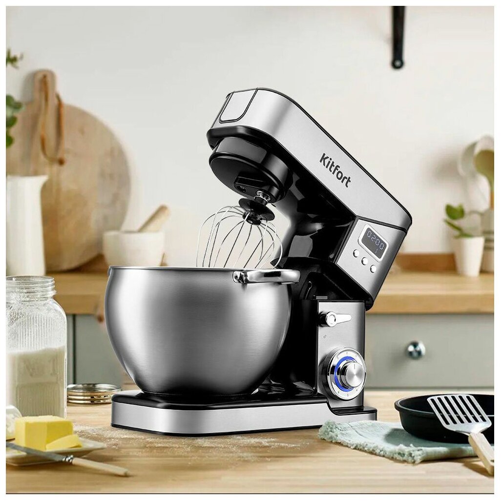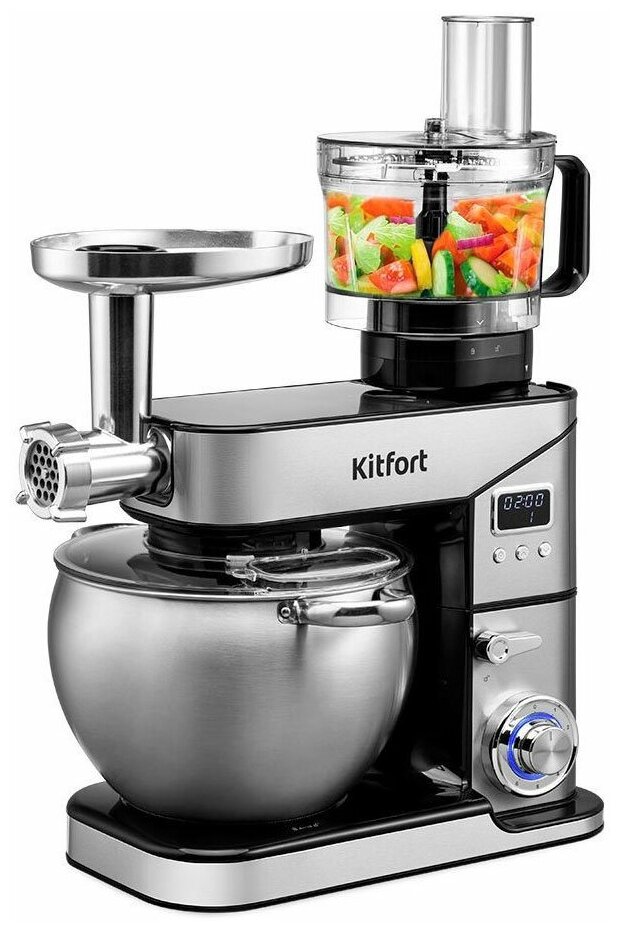 Многофункциональный и мощный планетарный миксер КТ-3413 поможет вам смешать ингредиенты, взбить яйца, картофельное пюре, соус, замесить тесто, приготовить фарш, смешать ледяной коктейль или смузи, нашинковать овощи и фрукты, выжать сок из цитрусовых!