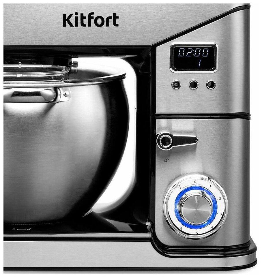 Миксер оснащён вместительной чашей ёмкостью 10л с удобными ручками. Чаша прочная, выполнена из нержавеющей стали, в ней можно смешивать даже горячие ингредиенты. Крышка предотвращает разбрызгивание и позволяет добавлять ингредиенты прямо во время работы!
