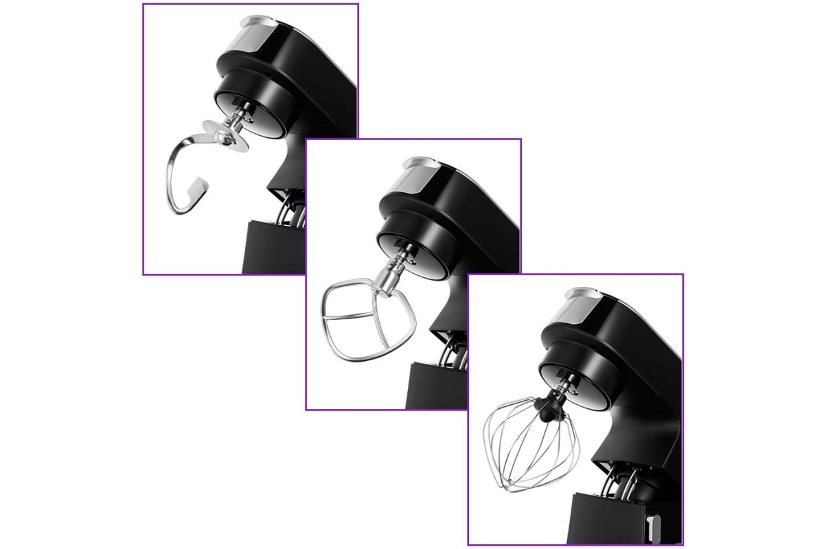 Планетарный миксер КТ-3436 поможет смешать ингредиенты для любого блюда, взбить яичный белок или сливки, приготовить картофельное пюре, мусс, крем, соус, замесить жидкое тесто для блинов или крутое тесто для пельменей и пирогов.