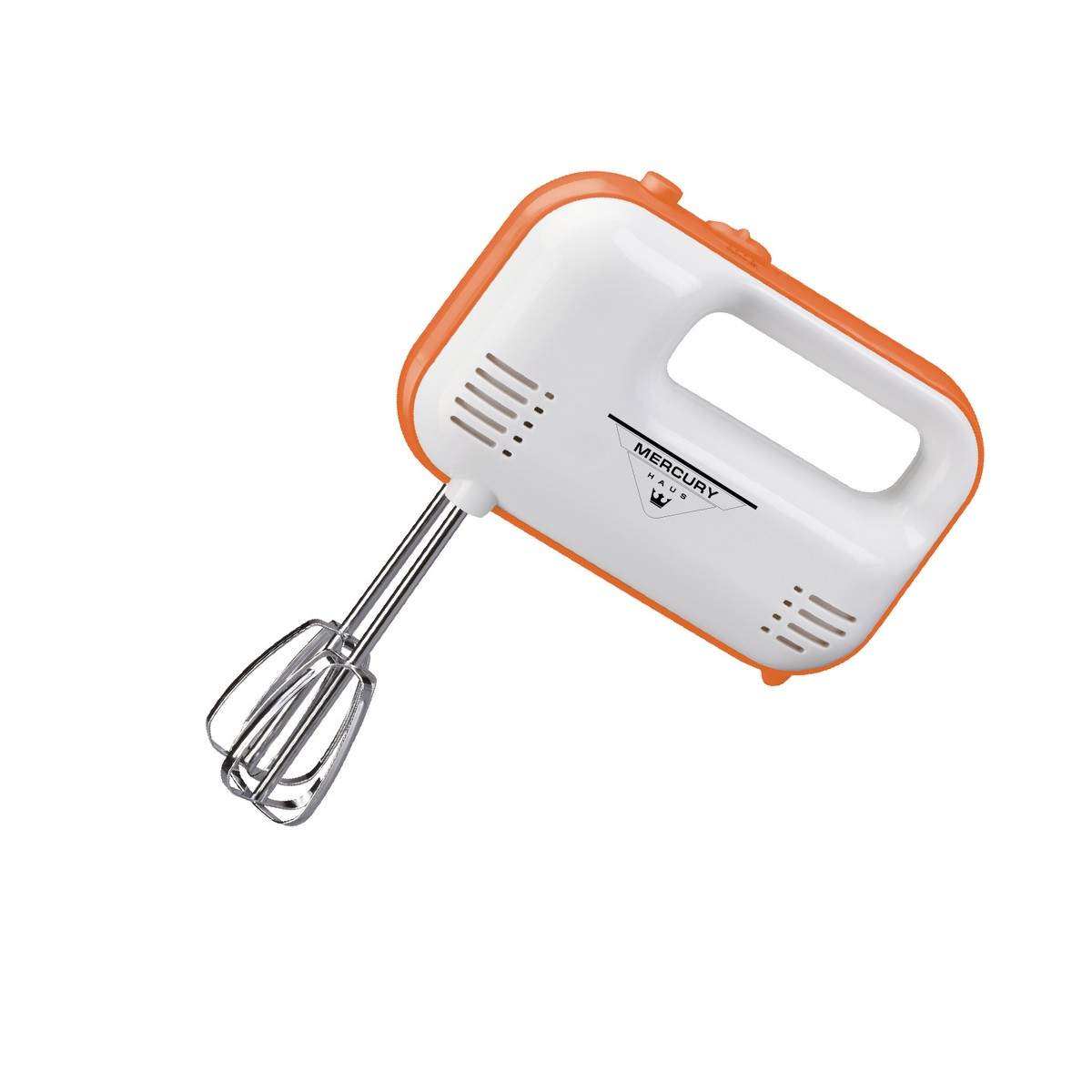 Миксер Mercuryhaus MC-7675 бело-оранжевого цвета с механическим переключателем позволяет выбрать до пяти скоростей вращения насадок. Для их отсоединения предусмотрена отдельная кнопка. Корпус устройства выполнен из пластика, в комплект поставки включены два стальных венчика для взбивания.