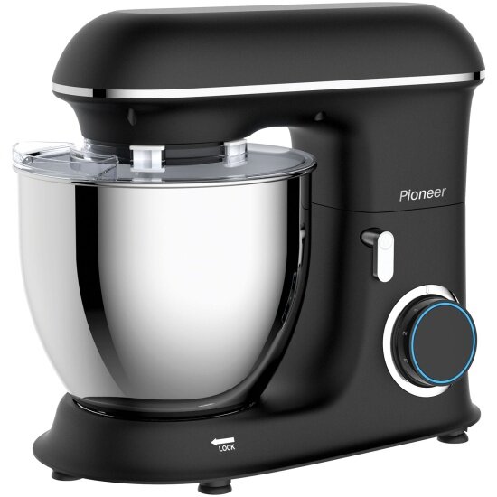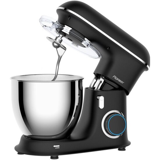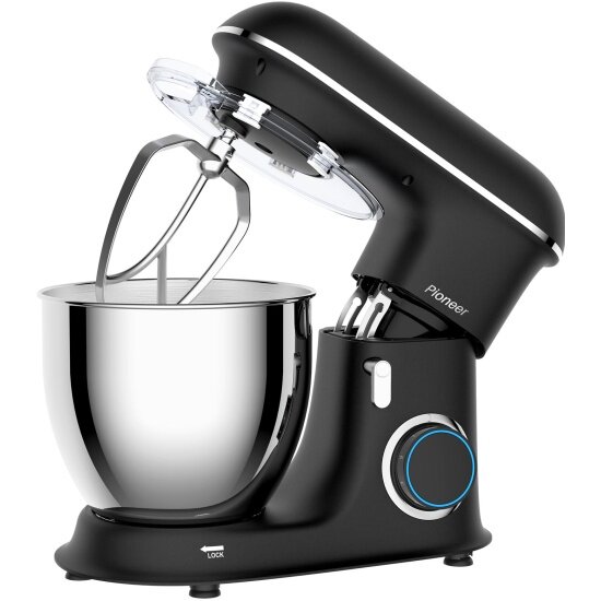 Комплектация: миксер, чаша из нержавеющей стали, крышка чаши, крючок для замеса теста, лопатка для перемешивания, венчик для взбивания, лопатка