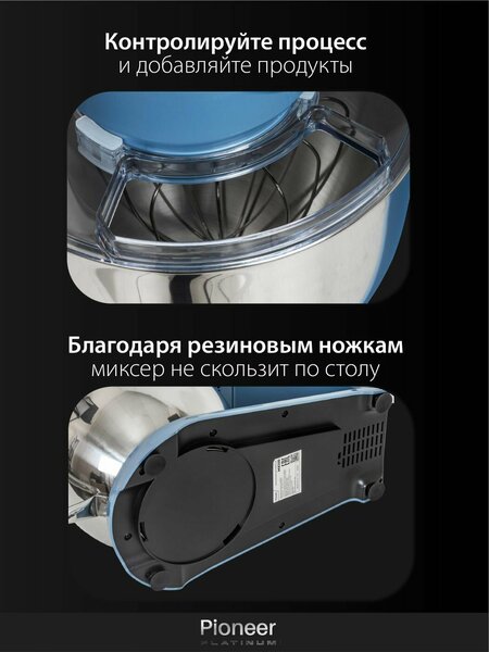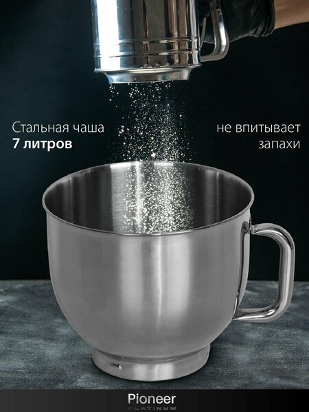 венчик для взбивания, защитная крышка, насадка-крюк, насадка для перемешивания, чаша