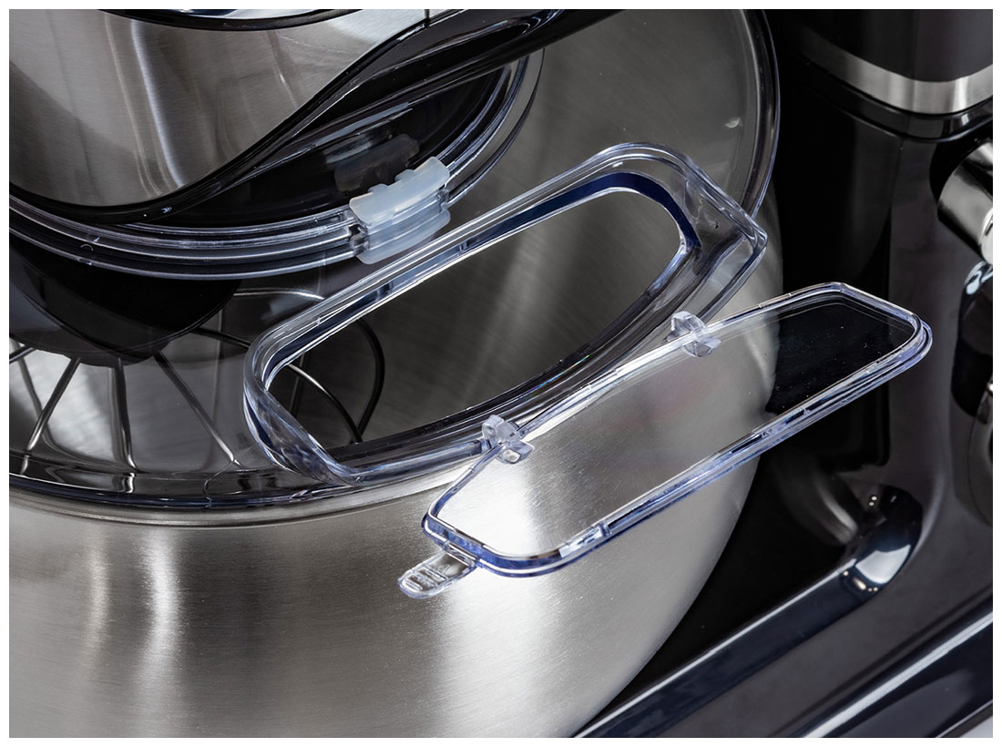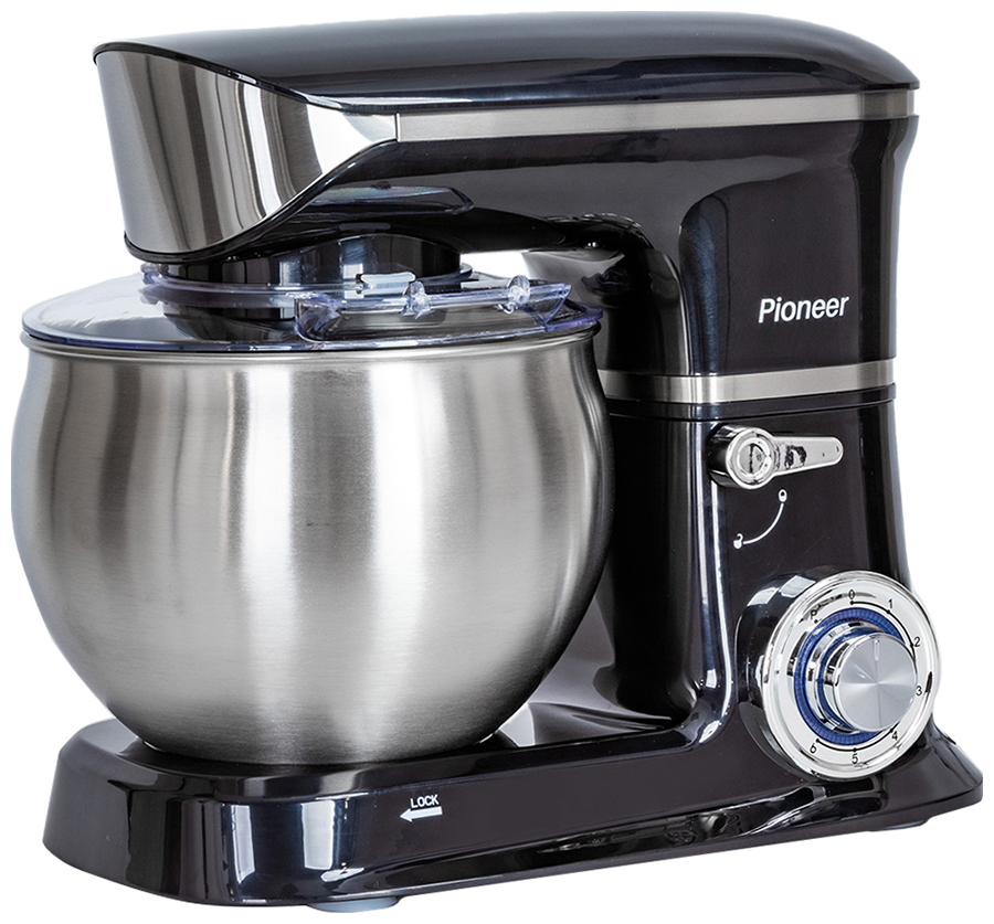 Планетарный миксер Pioneer MX327 мощностью 1200 Вт идеально выполнит работу по замесу дрожжевого и бездрожжевого теста различной вязкости, взбиванию яиц, сливок, кремов и муссов, приготовлению воздушного пюре. Насадки миксера вращаются вокруг своей оси и по окружности чаши, что обеспечивает максимально однородную консистенцию ингредиентов. В комплекте с миксером поставляются три насадки: крючок для замеса теста, лопатка для перемешивания и венчик для взбивания. На корпусе прибора расположен удобный переключатель для регулировки скорости. Чаша объемом 5,5 литров и сменные насадки изготовлены из качественной нержавеющей стали. Модель оснащена защитной прозрачной крышкой от брызг с отверстием для добавления продуктов во время перемешивания. Противоскользящие ножки гарантируют надежное сцепление с рабочей зоной. Планетарный миксер отлично справляется с замесом тяжелого теста, поэтому его можно использовать в небольших пекарнях и домашних кондитерских.