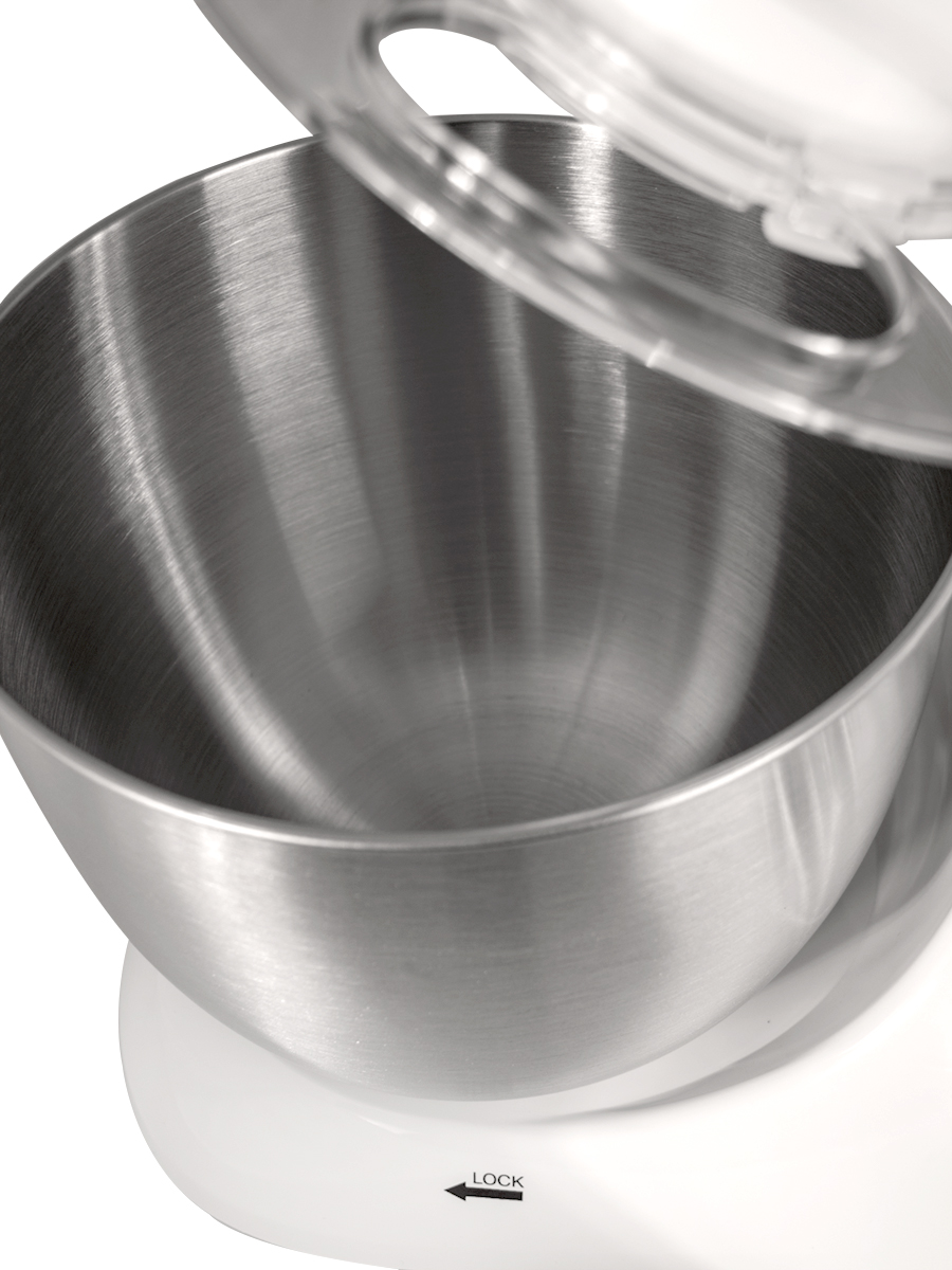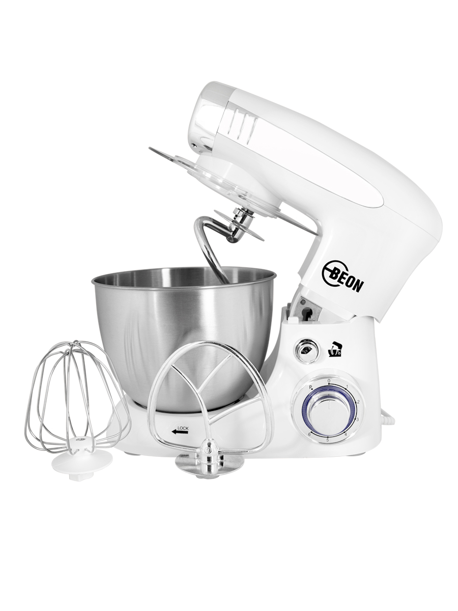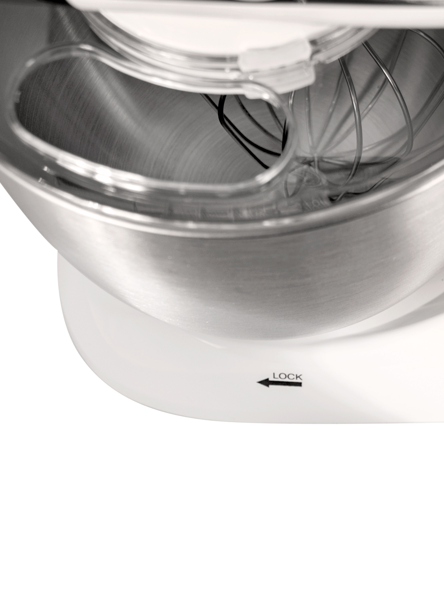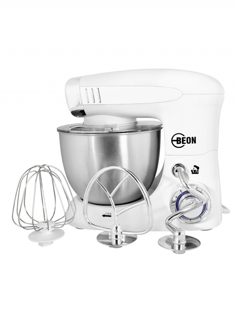 В комплект входят: замешивающий крюк, плоский битер, венчик, лопатка