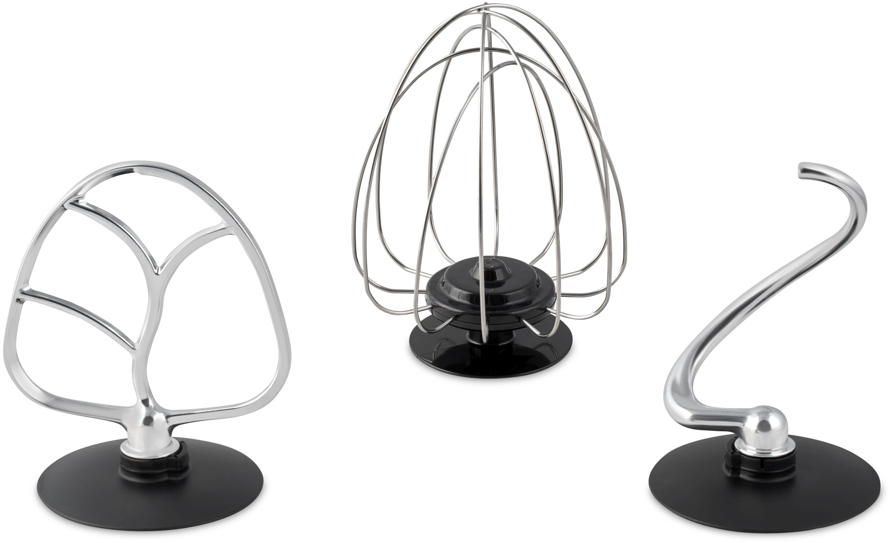Насадка-крюк оптимально подходит для замешивания любого теста для сдобной выпечки, хлеба и лапши. Насадка-лопатка идеальна для приготовления песочного и заварного теста. Универсальная насадка венчик может применяться для взбивания крема, мусса, соуса, пюре, коктейлей и смузи.