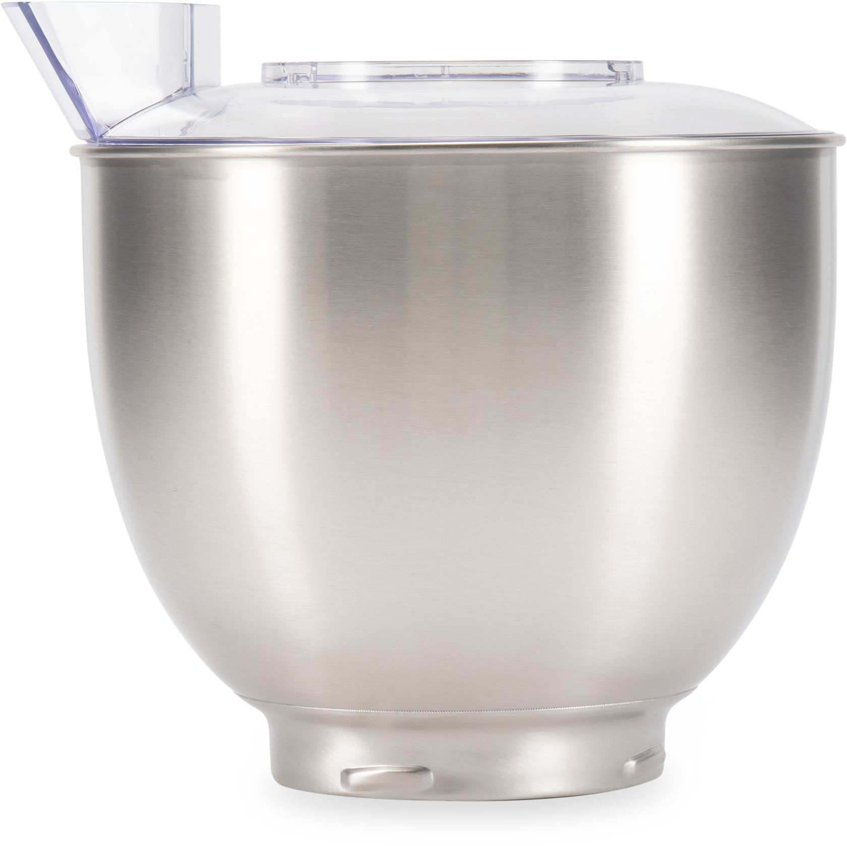 Чаша из нержавеющей стали 5 л. Объем чаши идеально сбалансирован с точки зрения вместимости, эффективности смешивания и занимаемого миксером места, а выбранный для неё материал обеспечивает высокую прочность, долгий срок службы и простоту ухода.