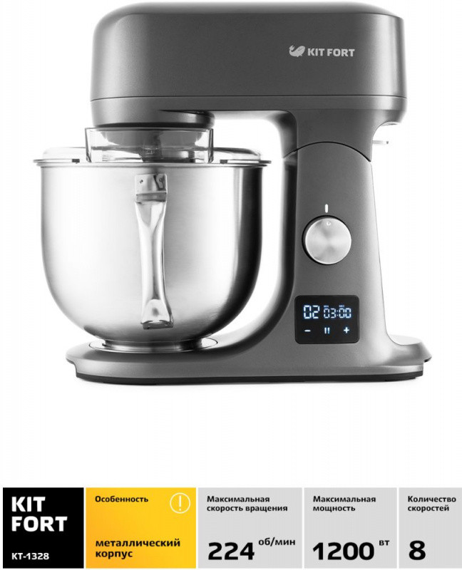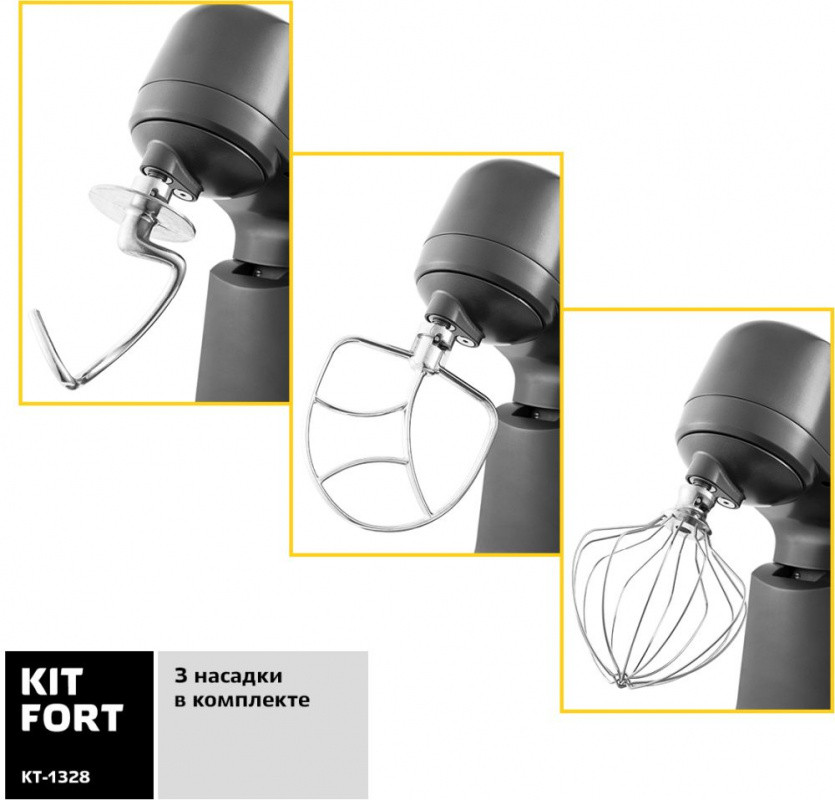 Комплектация: Миксер, чаша, венчик для взбивания, лопатка для перемешивания, крюк для теста, инструкция