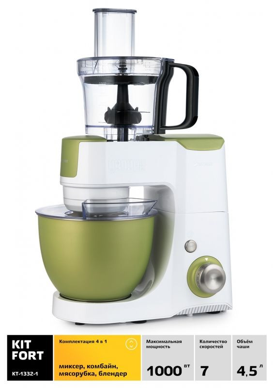 Описание: Универсальная кухонная машина«4 в 1»: миксер. мясорубка. блендер. комбайн.