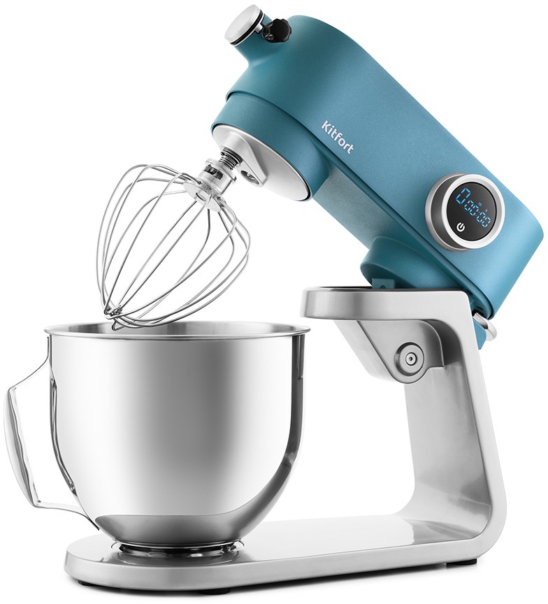 стационарный миксер, планетарное движение венчика, мощность 800 Вт, крючки для замешивания теста, венчик для взбивания, насадка для приготовления пюре, вес 8.9 кг