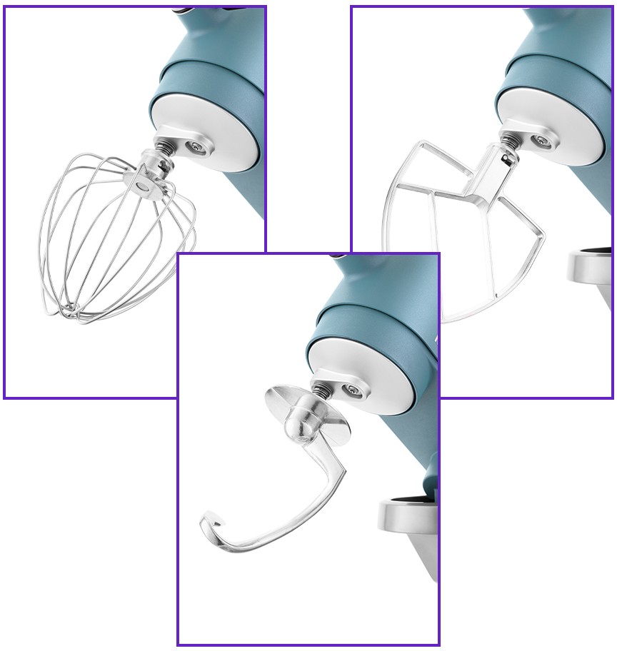Насадки: крючки для замешивания теста, венчик для взбивания, насадка для приготовления пюре