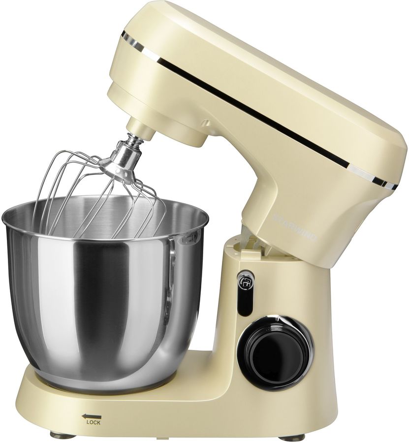 Планетарный миксер Starwind SPM6164 за считаные минуты сможет до однородной массы взбить белки, смешать и вымесить дрожжевое тесто, приготовить воздушный сливочный крем. Мощность представленной модели составляет порядка 1300 Ватт. Изготовлено устройство на основе прочного пластика, выполнено в нейтрально бежевом цвете. Предусмотрено 8 скоростных режимов на выбор, а чаша имеет объем порядка 4,5 литра. На основании прибора есть прорезиненные ножки, исключающие вероятность смещения миксера в ходе его использования.