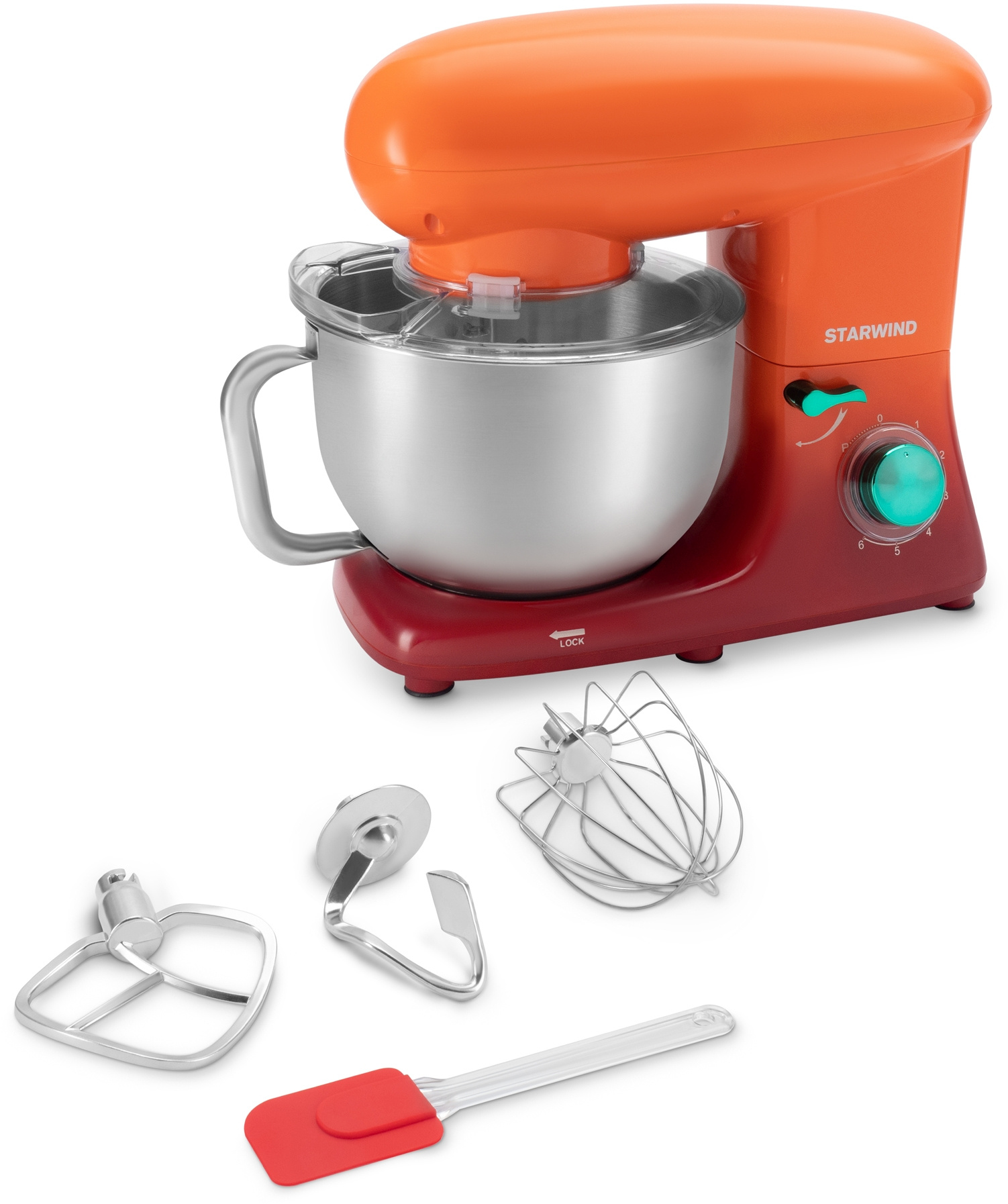 Эффектный и мощный планетарный миксер Starwind SPM7170/7160 поможет быстро и эффективно смешать ингредиенты для крема, бисквита, блинчиков и другой выпечки. Наличие в комплекте трех функциональных насадок позволяет использовать его для приготовления легких, средних и тяжелых смесей, а 6 ступеней регулировки скорости вращения – подобрать оптимальный режим для получения однородной массы.