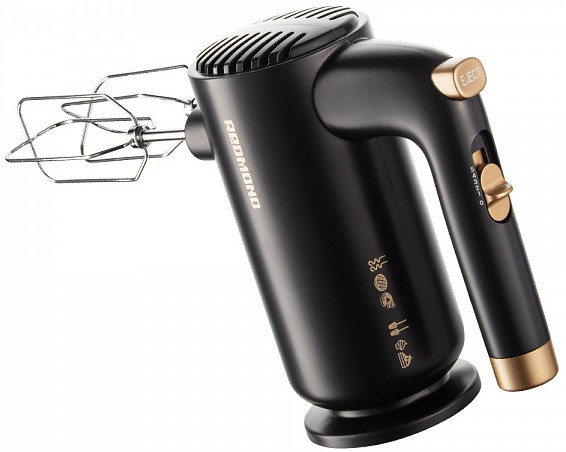 ручной миксер, мощность 600 Вт, крючки для замешивания теста, венчик для взбивания, кнопка отсоединения насадок