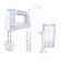 • В комплектацию, помимо двух прочных венчиков для взбивания и двух крюков для перемешивания теста, включены насадка-блендер и емкость для смешивания. Стальные насадки надежны и долговечны. Стакан изготовлен из высококачественного пластика и безопасен.