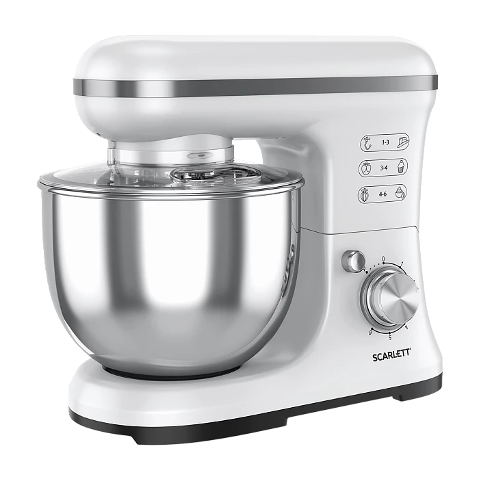 Насадки: Венчик для взбивания, крюк для замешивания теста, лопатка для смешивания