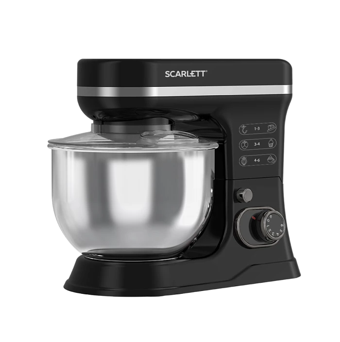 Насадки: Венчик для взбивания, крюк для замешивания теста, лопатка для смешивания
