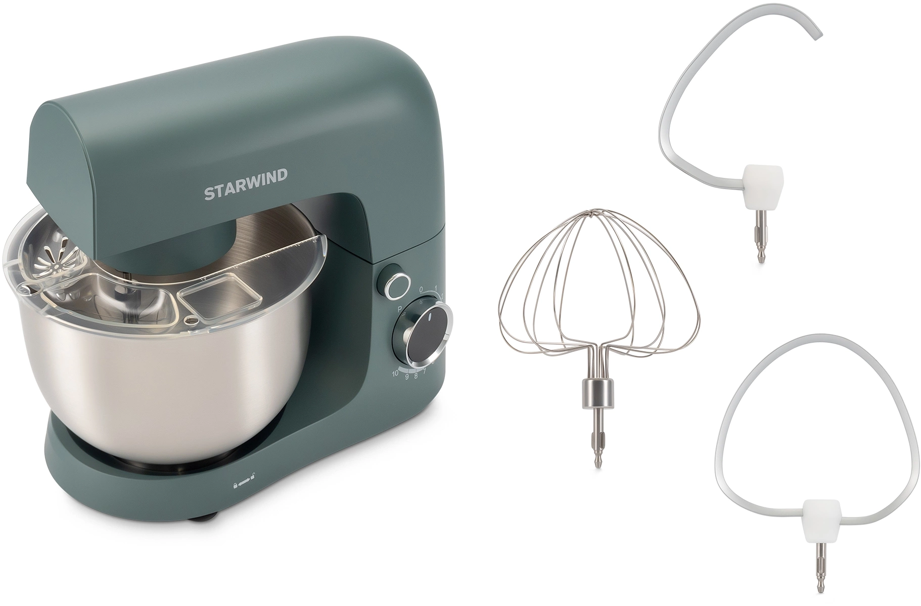 Комплектация Миксер; насадка-крюк; насадка-венчик; насадка-лопатка; инструкция с гарантийным талоном; книга рецептов; мультифункциональный защитный обод