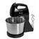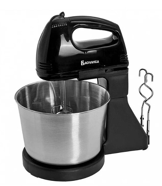 Миксер предназначен для смешивания продуктов, создания однородной массы и обогащения взбиваемой жидкости воздухом. Миксером взбивают и замешивают яйца, сливки, коктейли, мусс, омлет, легкое тесто, пюре, соусы и другие продукты в бытовых и аналогичных условиях. Цвет: черный. Съемная чаша из нержавеющей стали. Переключатель скоростей с кнопкой извлечения насадок. 2 венчика для взбивания яиц и крема. 2 насадки для замешивания теста. Подставка с местом для хранения сменных насадок.