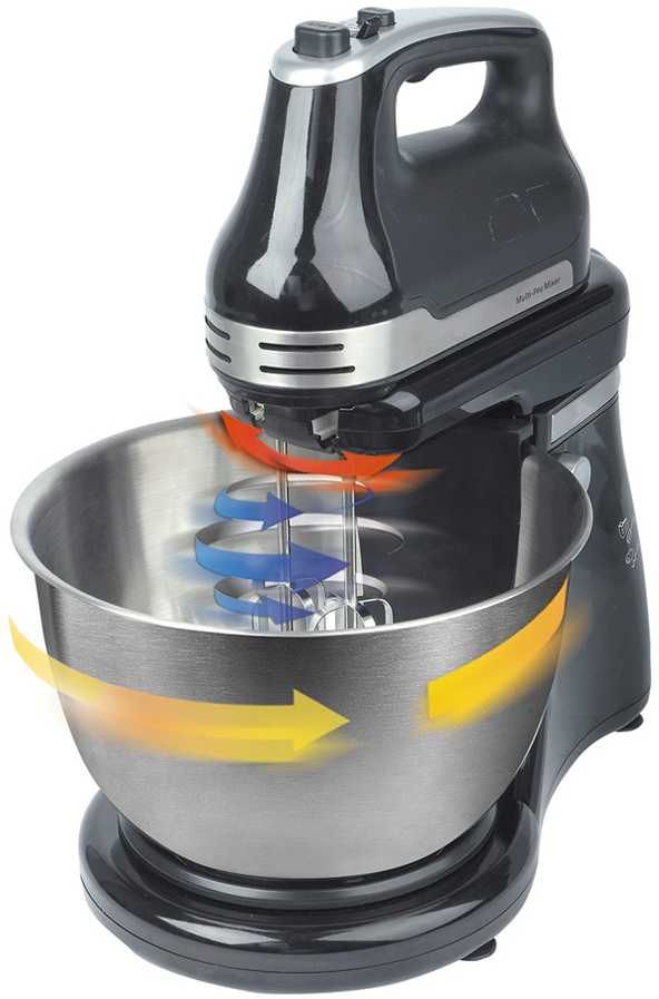 Описание: Многофункциональный миксер с чашей. С его помощью можно замешивать жидкое и густое тесто, смешивать ингредиенты, взбивать яичные белки и сливки, готовить пюре. Подходит для смешивания горячих ингредиентов. Плавная регулировка скорости помогает подобрать оптимальные параметры работы для любой задачи.