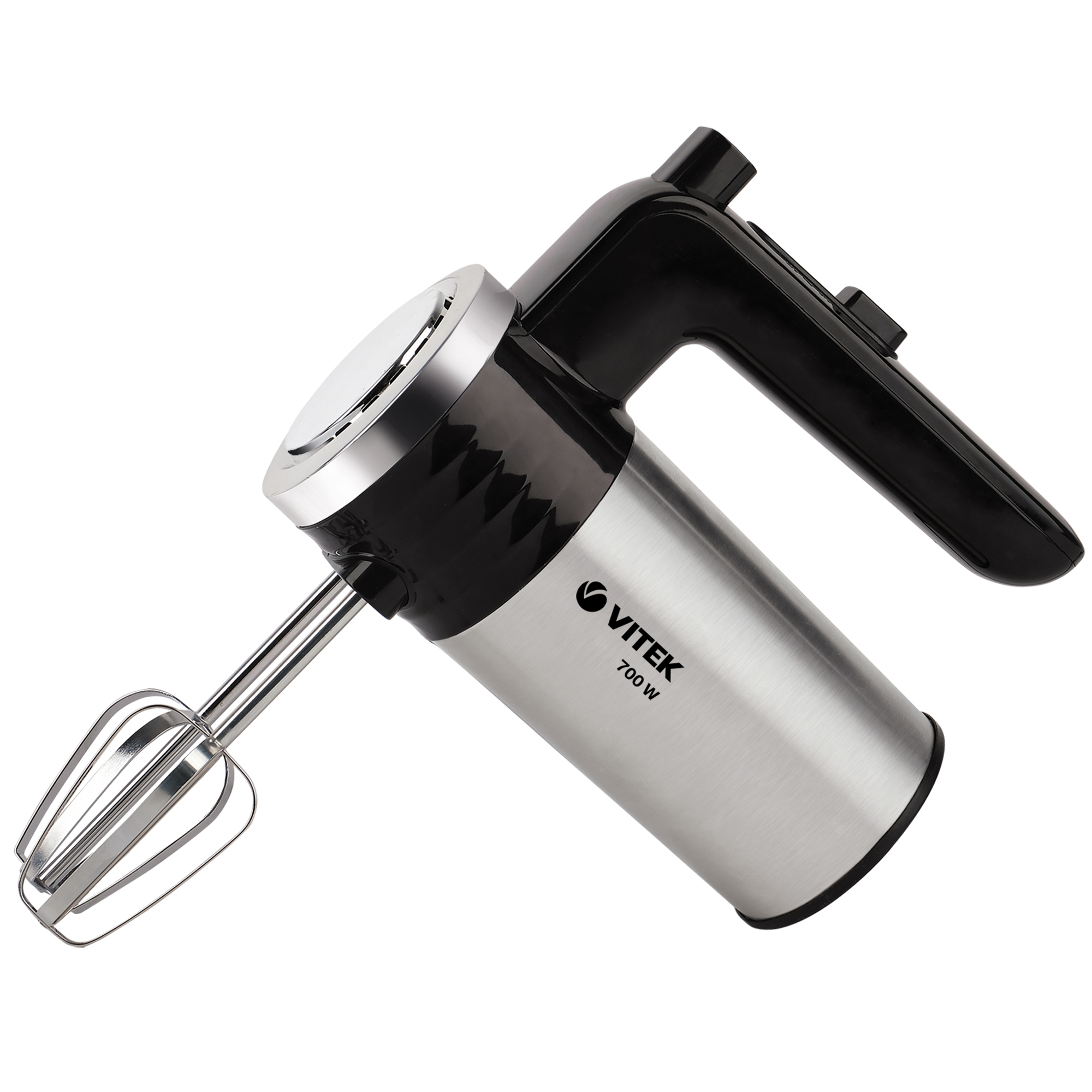 Решить любую кондитерскую задачу поможет вам ручной миксер VITEK VT-1483 с максимальной мощностью 700 Вт. Достижению безупречного результата и особому комфорту в использовании способствуют 5 скоростных режимов прибора. Миксер оснащен двумя венчиками для взбивания и двумя крюками для замешивания теста, выполненными из надежной стали: насадки легко отделяются от корпуса нажатием специальной кнопки.