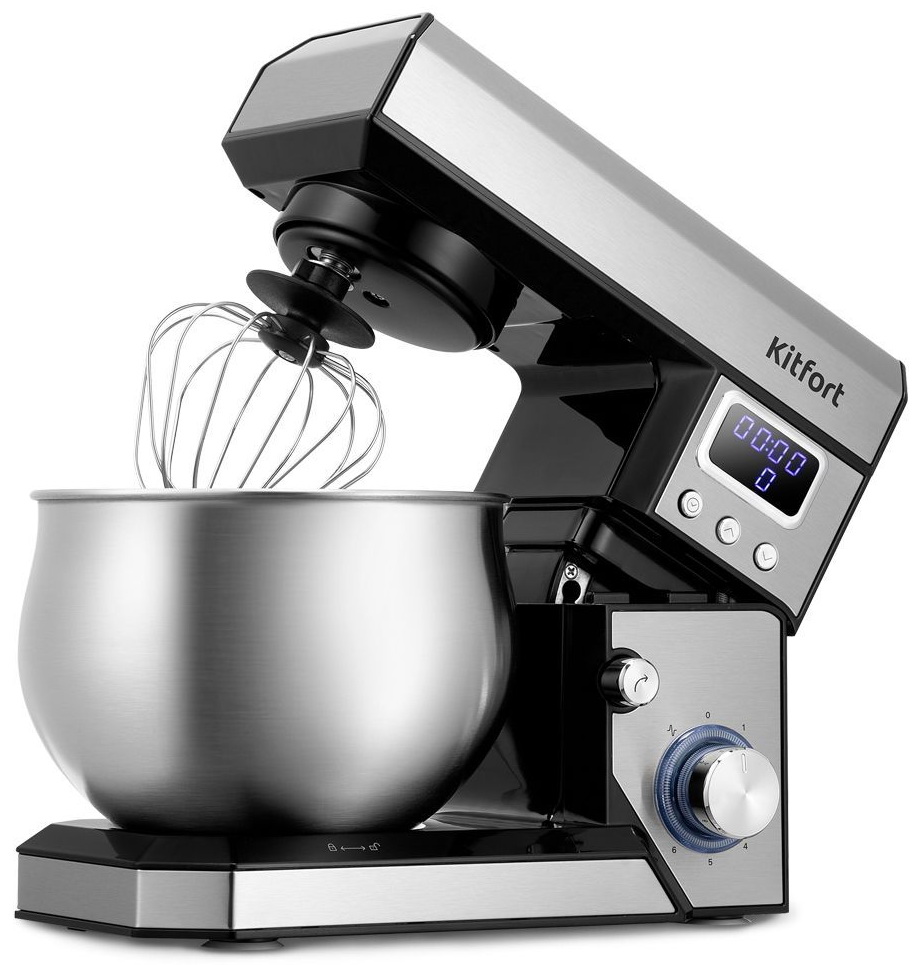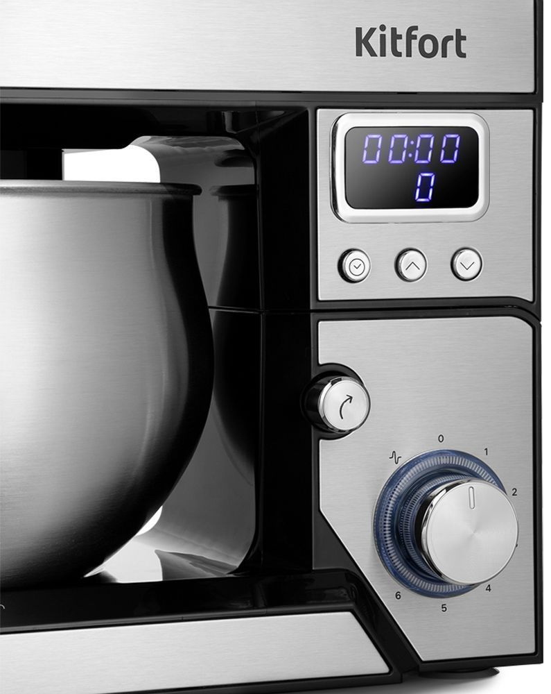 Вам достаточно положить ингредиенты, надеть насадку и выбрать скорость работы. Прорезиненные ножки прочно фиксируют прибор на столе. Планетарный миксер КТ-3470 выполнен в серебристом цвете и станет украшением вашей кухни!