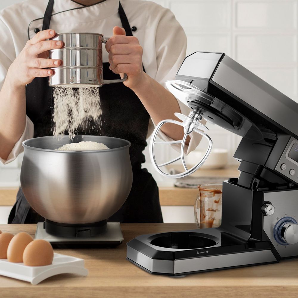 Миксер оснащён планетарной системой смешивания: во время работы насадка вращается вокруг своей оси и одновременно движется по окружности по внутреннему объёму чаши. Это обеспечивает качественное смешивания без комков.
