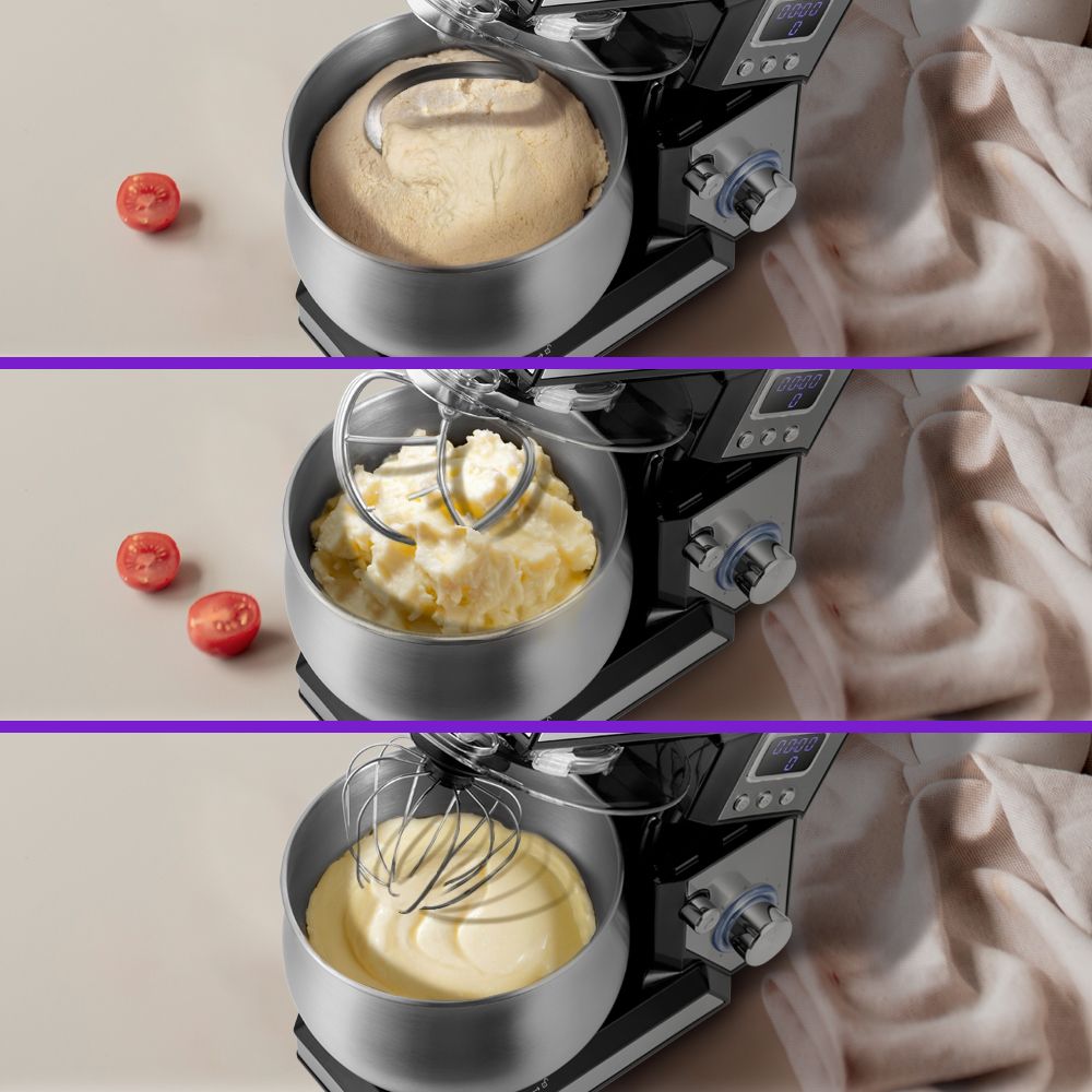 Мощный планетарный миксер Kitfort КТ-3470 поможет вам смешать ингредиенты, взбить яичный белок или сливки, приготовить картофельное пюре, соус, крем, мусс, замесить жидкое тесто для блинов и крутое - для пельменей и пирогов.