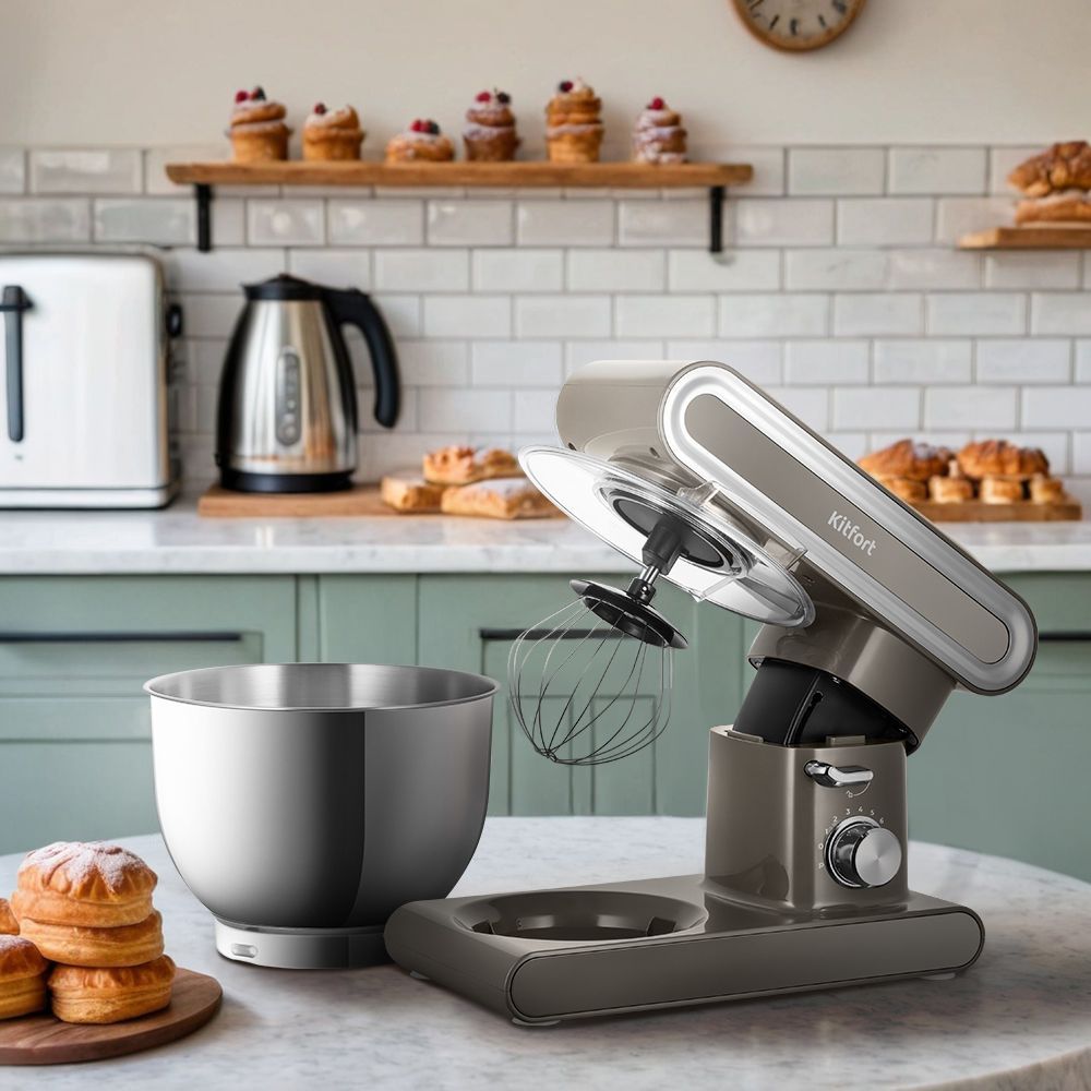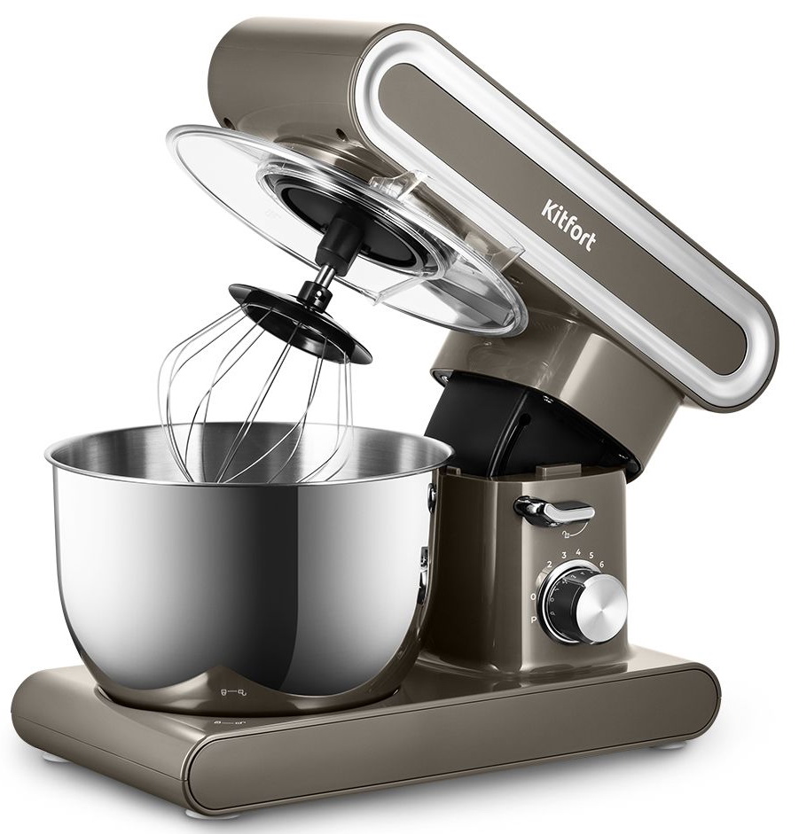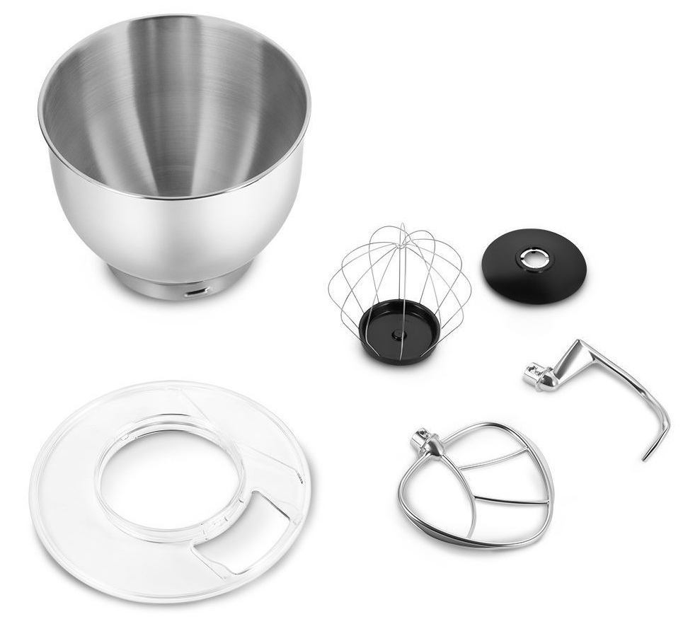 Миксер оснащён чашей ёмкостью 6,2 литров. Она изготовлена из нержавеющей стали, в ней можно смешивать даже горячие ингредиенты. Чаша укомплектована защитной крышкой с загрузочным отверстием, предотвращая разбрызгивание ингредиентов.