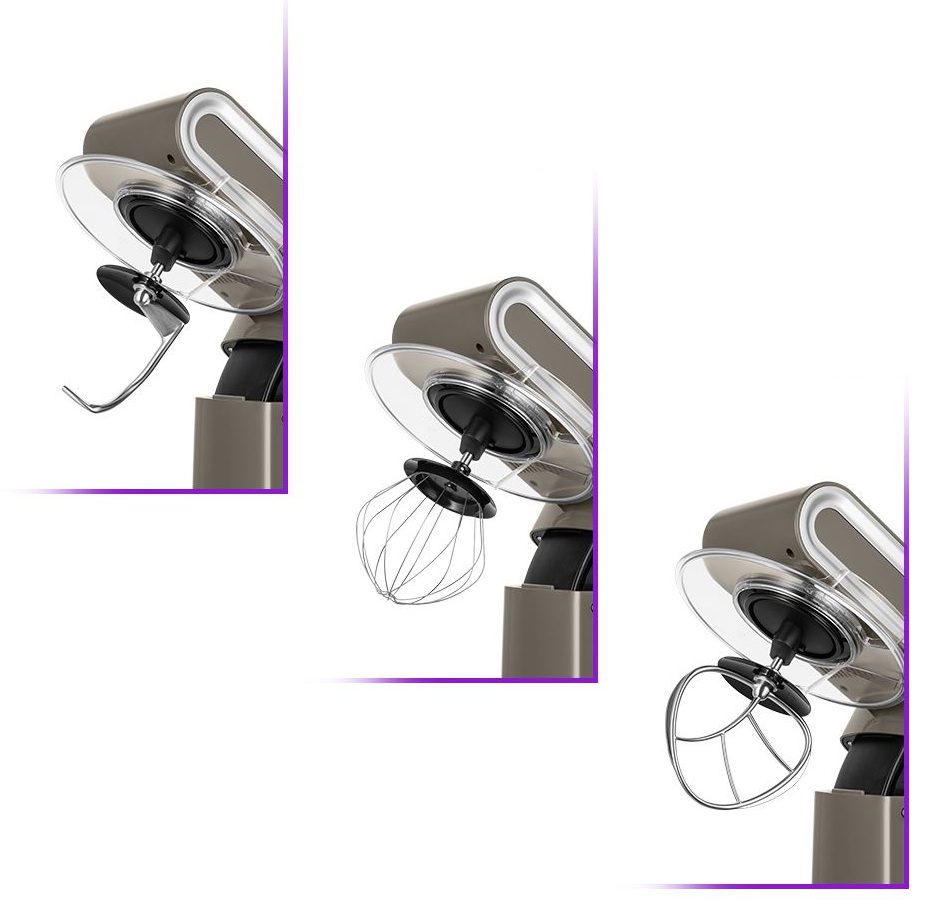 Миксер оснащён планетарной системой смешивания: во время работы насадка вращается вокруг своей оси и одновременно движется по окружности по внутреннему объёму чаши. Это обеспечивает идеальное качество смешивания без комков.