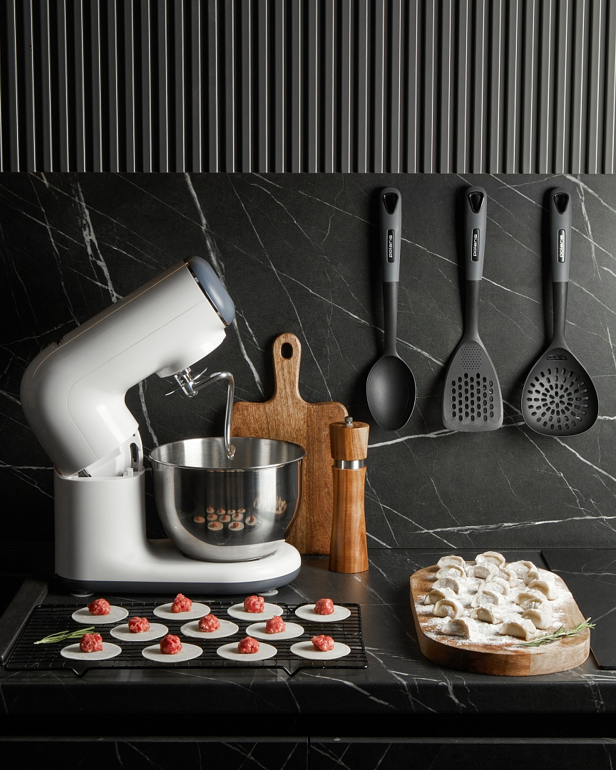 Polaris PKM 1101 поддерживает планетарное вращение, достигается это путем одновременного разнонаправленного вращения насадки и привода к насадке. Технология SmartMIX позволяет подобрать комфортную мощность для качественного смешивания продуктов, поддерживая 6 скоростных режимов и давая возможность воспользоваться импульсным режимом. Модель использует чашу объемом 4 л. Защиту двигателя от перегрева обеспечивает технология PROtect+. Эта кухонная машина обладает надежной конструкцией, включающей стальные шестерни. Для хранения кабеля в корпусе предусмотрен специальный отсек.