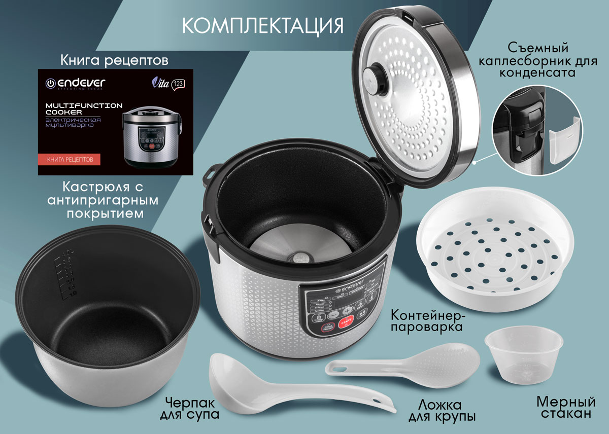 Мультиварка Endever Vita-123 - ваш незаменимый помощник на кухне! С мощностью 1000 Вт и ёмкостью чаши 5 литров она готова справиться с любыми задачами.
