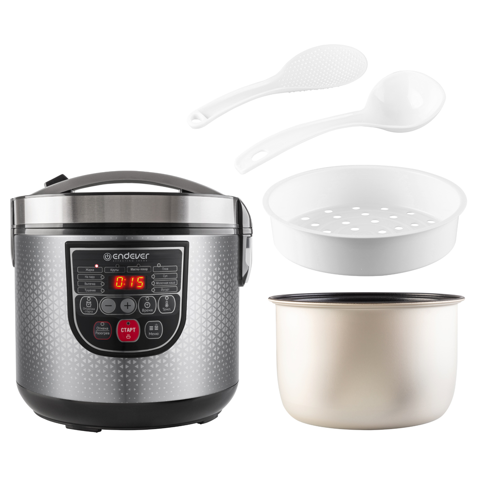 В комплекте с мультиваркой поставляется черпак для супа, ложка и мерный стакан - все необходимое для комфортного использования. Контейнер-пароварка позволит сохранить полезные витамины и микроэлементы продуктов при приготовлении на пару.