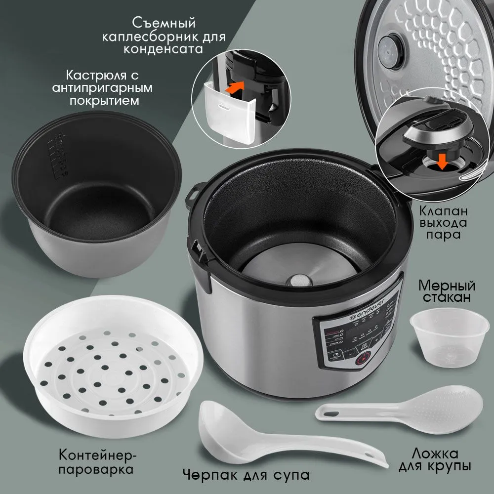 Программы приготовления: Подогрев, Тушение, Суп, Мультиповар, Варка, Паста, Крупа, Плов, Каша, Отложенный старт