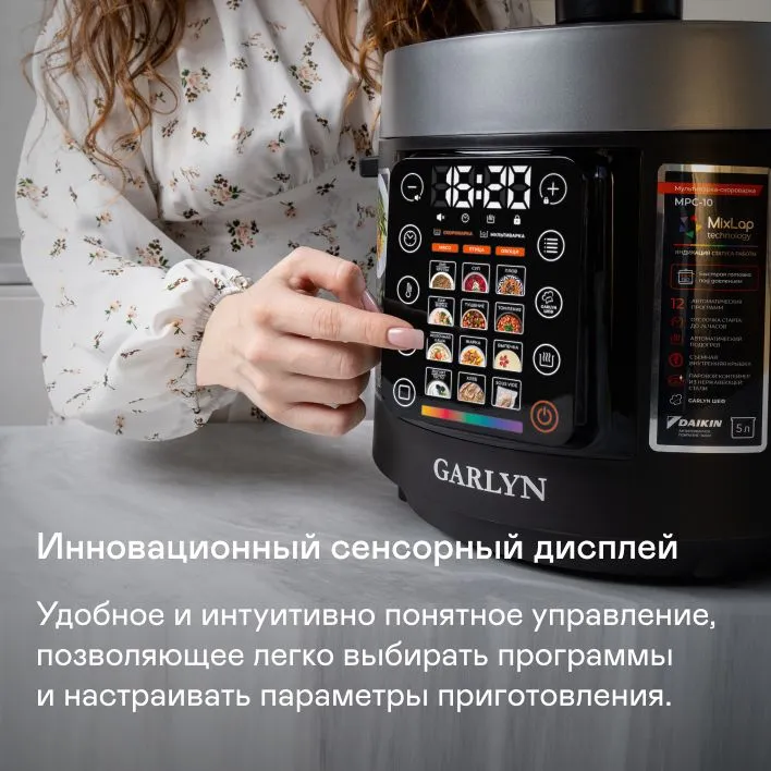 Программы приготовления: Варка, Выпечка, Детское питание, Жарка, Каша, Крупа, Отложенный старт, Мультиповар, Подогрев, Приготовление на пару, Суп, Томление, Тушение