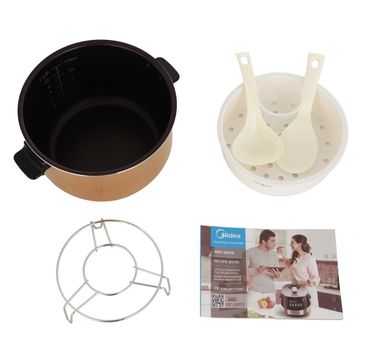 Комплектация лопатка для риса, подставка для приготовления на пару, чаша, мерный стакан, ложка для супа