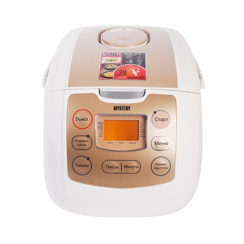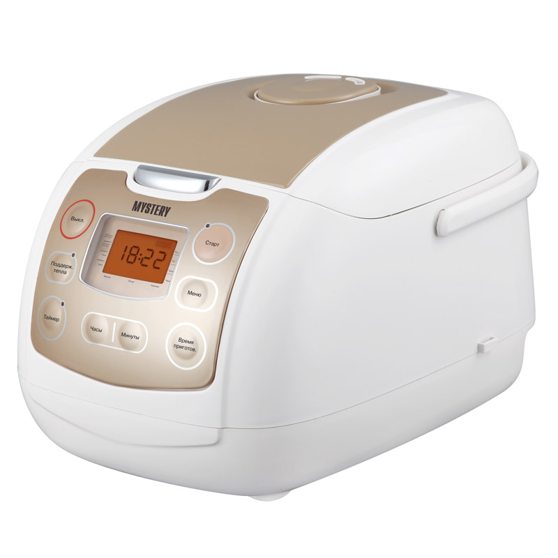 Мультиварка Mystery MCM-1019 привлекает своим ненавязчивым легким дизайном. Глянцевая поверхность корпуса, выполненного из пищевого пластика, отражает дневной свет, визуально расширяя помещение кухни. Блок управления с пультом, выделенный коричневым цветом, занимает большую площадь передней панели. Это позволило дизайнерам значительно увеличить кнопки, что дает возможность комфортной эксплуатации прибора людям с проблемами зрения.